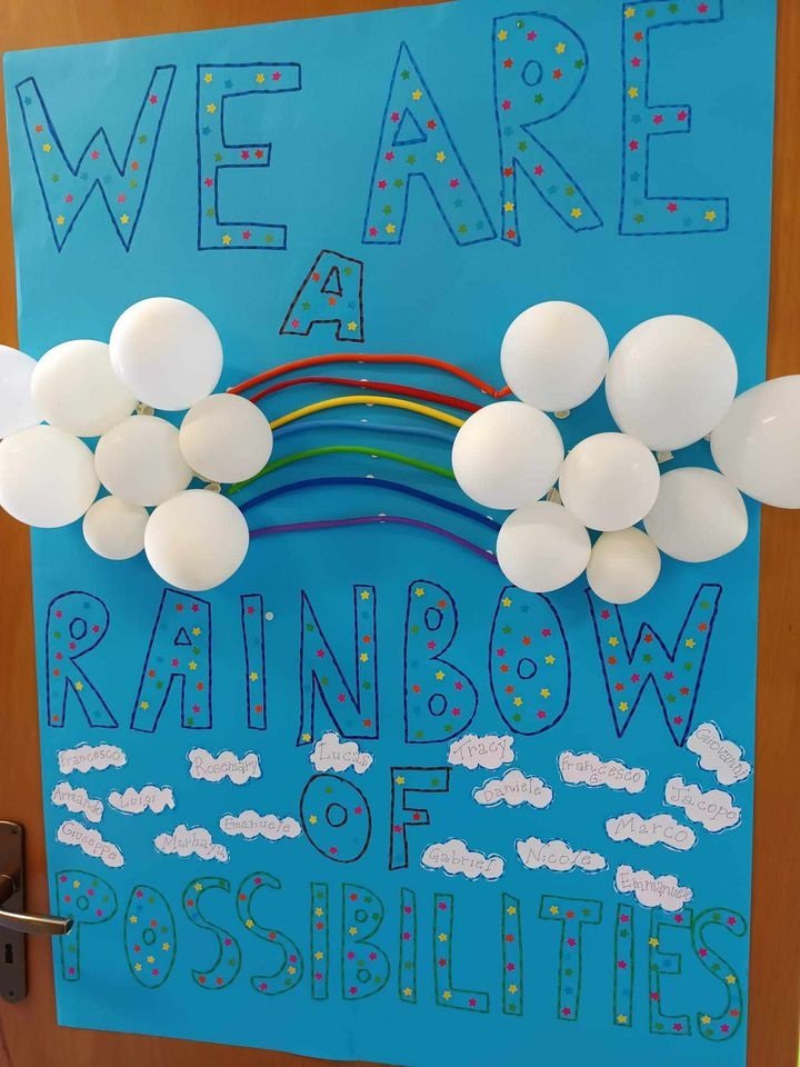 Il cartellone motivazionale creato da Costanza De Luca nasce dall’esigenza di trasmettere un messaggio di positività e inclusione all’interno della comunità scolastica. L’idea iniziale si è sviluppata attorno alla frase ‘we are a rainbow of possibilities’, che simboleggia l’importanza della diversità e dell’unità. Costanza ha voluto enfatizzare come ognuno di noi sia unico e contribuisca in modo particolare al mondo che ci circonda, creando insieme un arcobaleno di opportunità e esperienze.