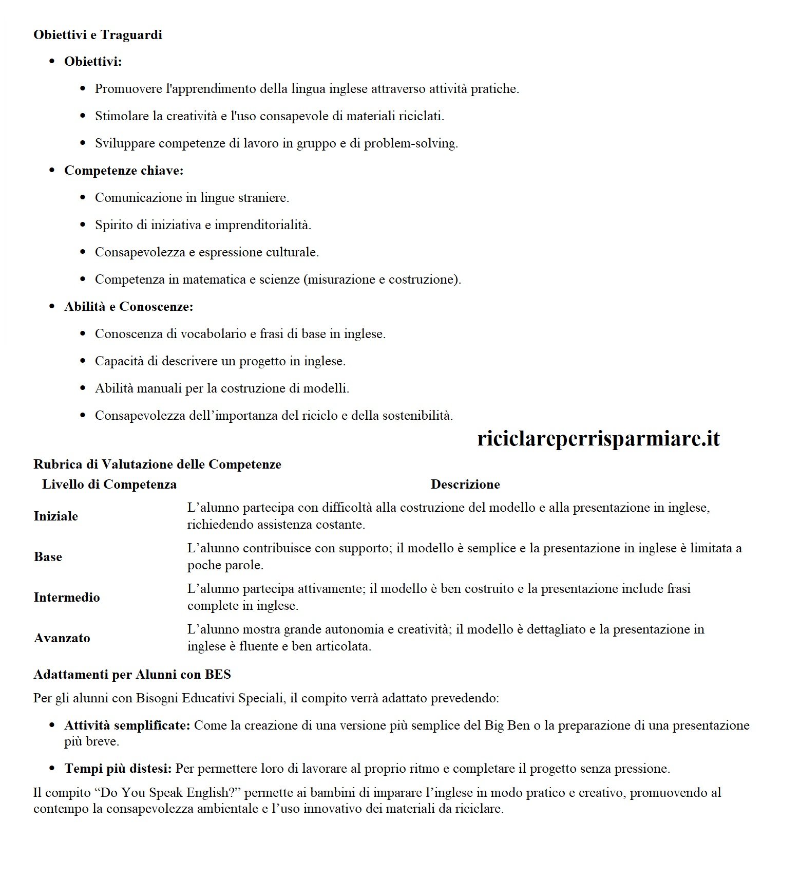 Il compito di realtà “Do You Speak English?” invita gli alunni della Scuola Primaria e Secondaria di I grado a esplorare la lingua inglese attraverso attività creative e pratiche. I bambini saranno coinvolti nella costruzione di un modello del Big Ben utilizzando cartone riciclato, accompagnato dall’apprendimento di vocaboli e frasi in inglese legati al progetto. Questa esperienza unica combina il lavoro manuale con l’apprendimento linguistico, promuovendo il riciclo e incoraggiando un approccio pratico e divertente allo studio dell’inglese.