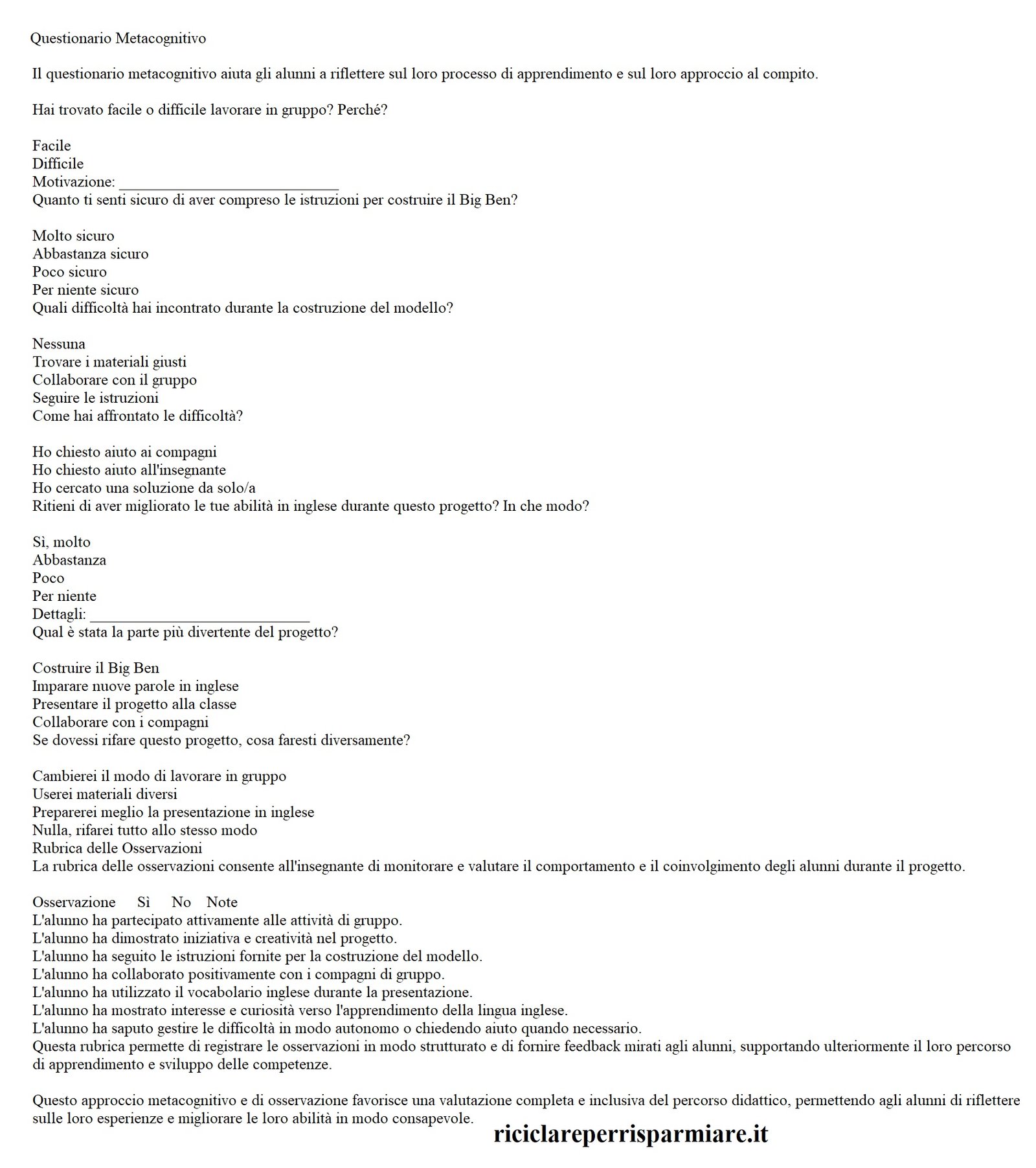 - Modalità di lavoro: Lavoro in piccoli gruppi per favorire la collaborazione e la comunicazione.
