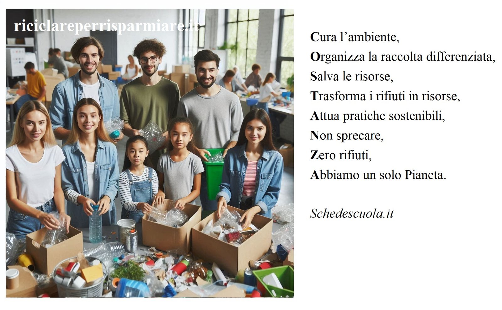 Schedescuola.it ha formulato l’acrostico “Costanza” che include un riferimento al riciclo: