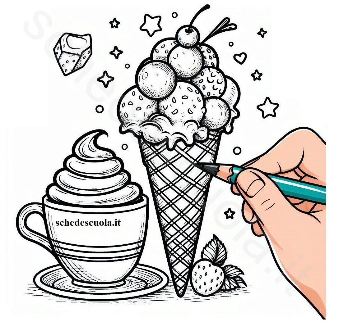 1. Dettagli nascosti: I bambini possono anche aggiungere nuvole, cuori o altri piccoli dettagli nelle loro illustrazioni. Molti bimbi hanno aggiunto piccoli dettagli come occhi o farfalle che si posano sul gelato oppure un sole sorridente che lo illumina. Questi dettagli aggiungono profondità e anche interesse alle loro opere d’arte.