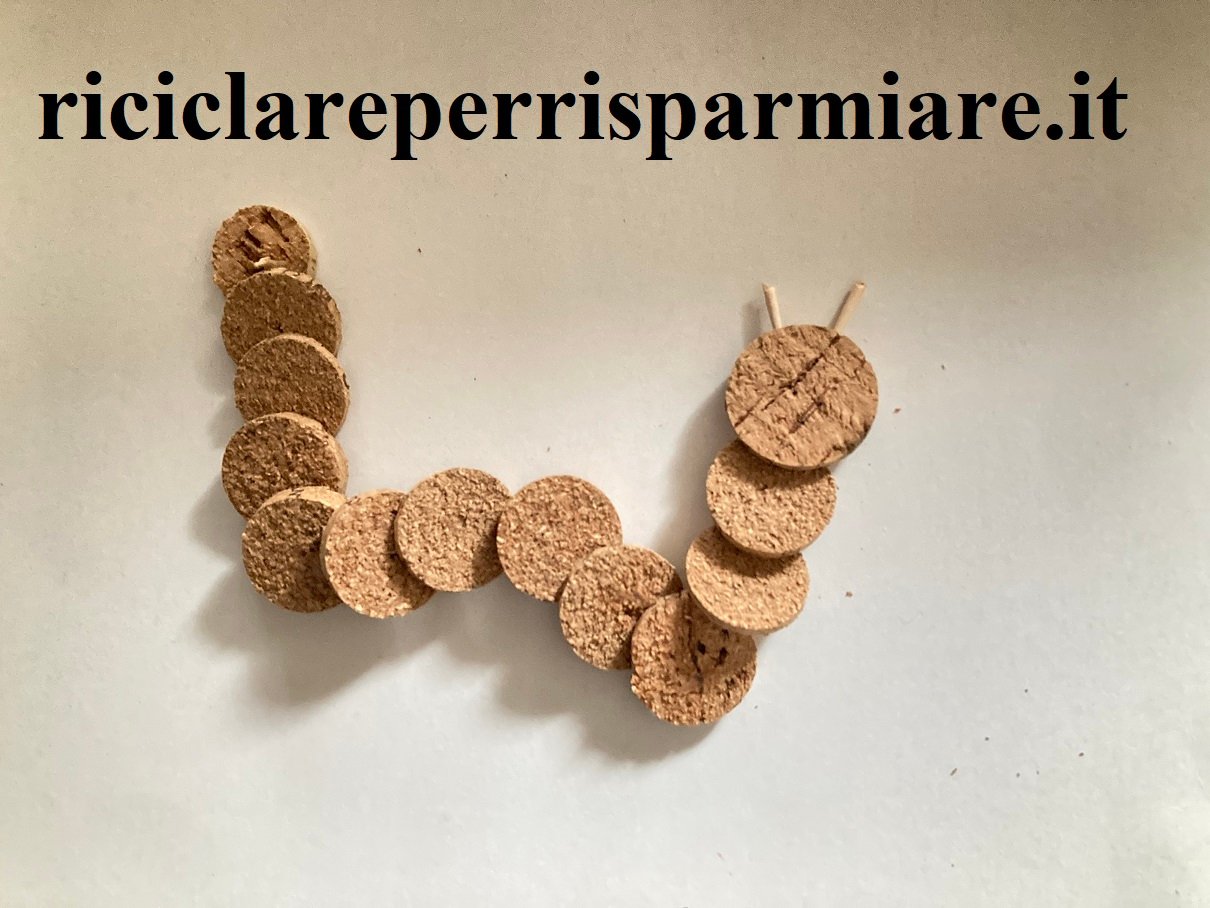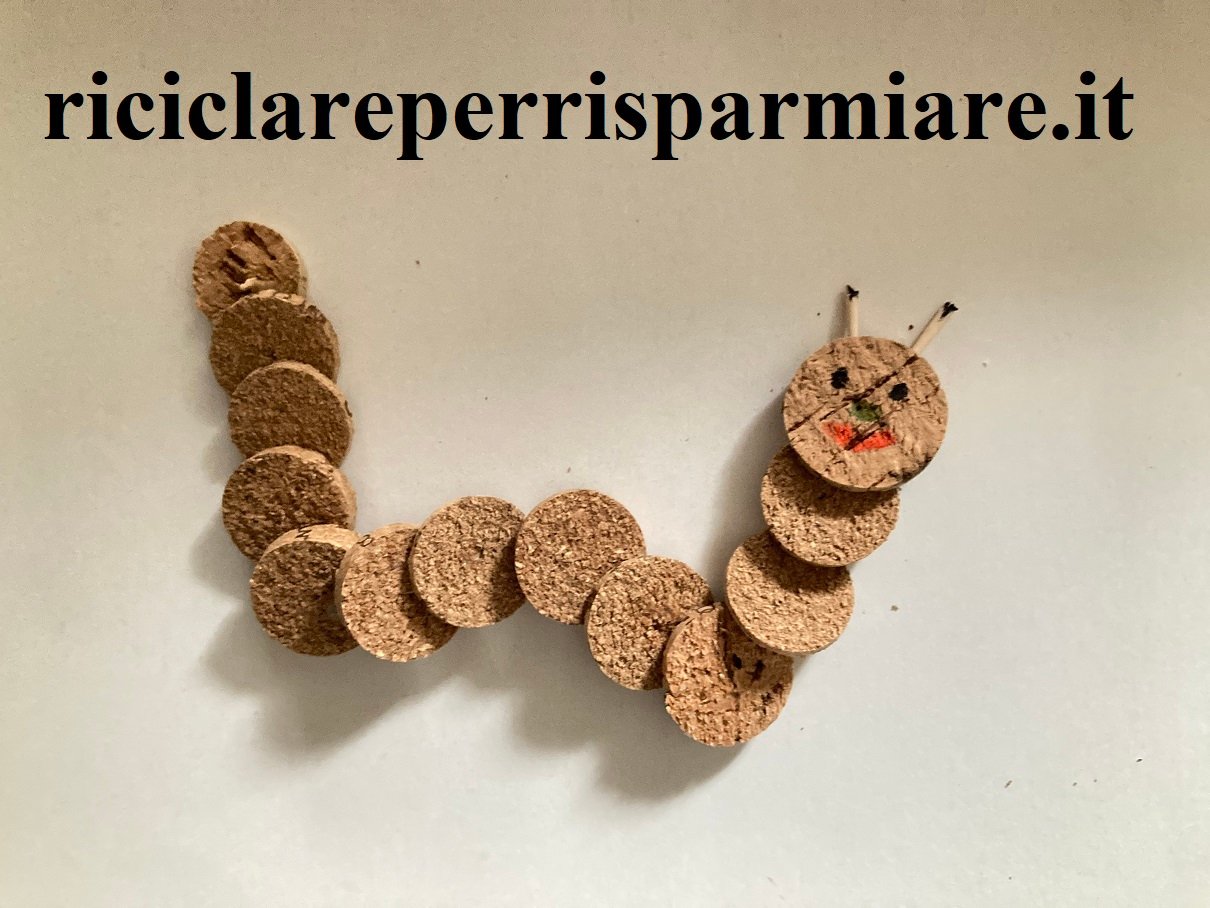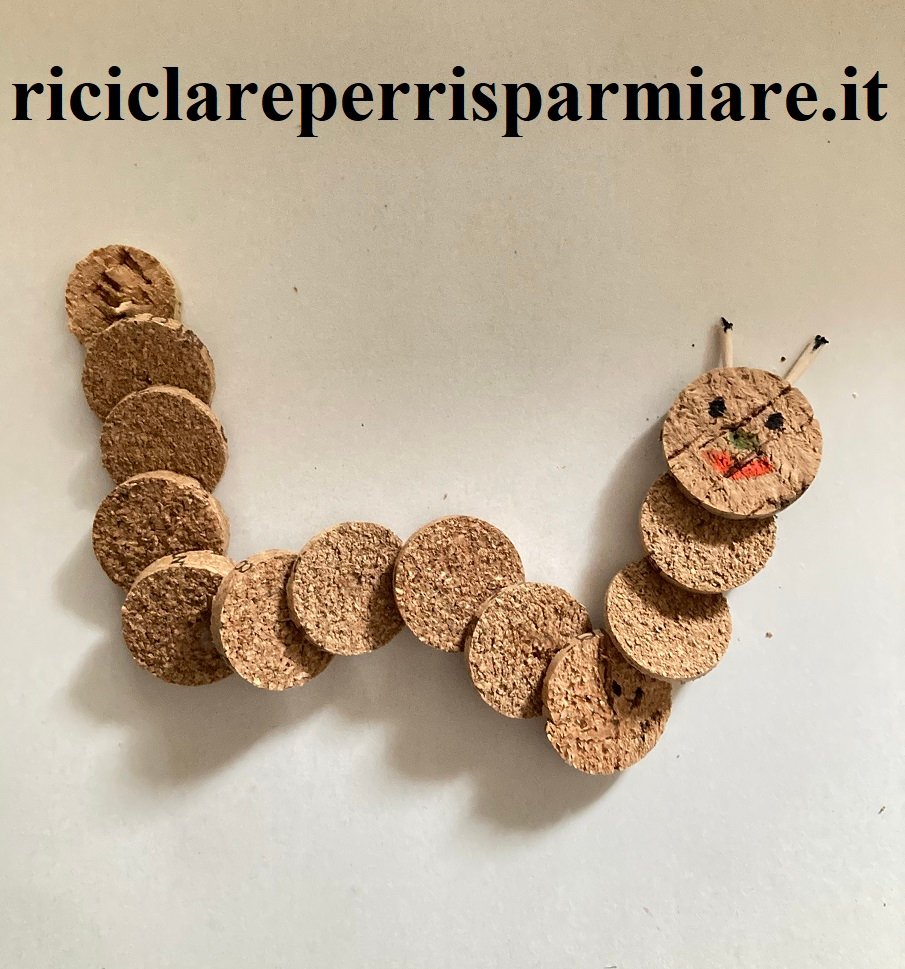 Ecco il nostro bruco in sughero realizzato per riciclare il sughero. Crea un bruco con i bambini, i miei si sono divertiti tantissimo, … ed hanno anche appreso tante belle cose sui bruchi, che non conoscevano.
