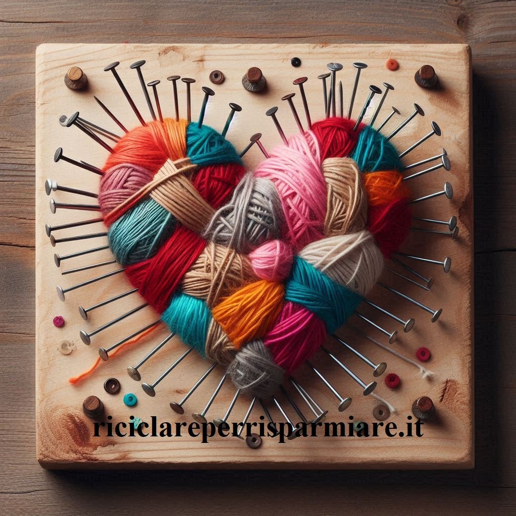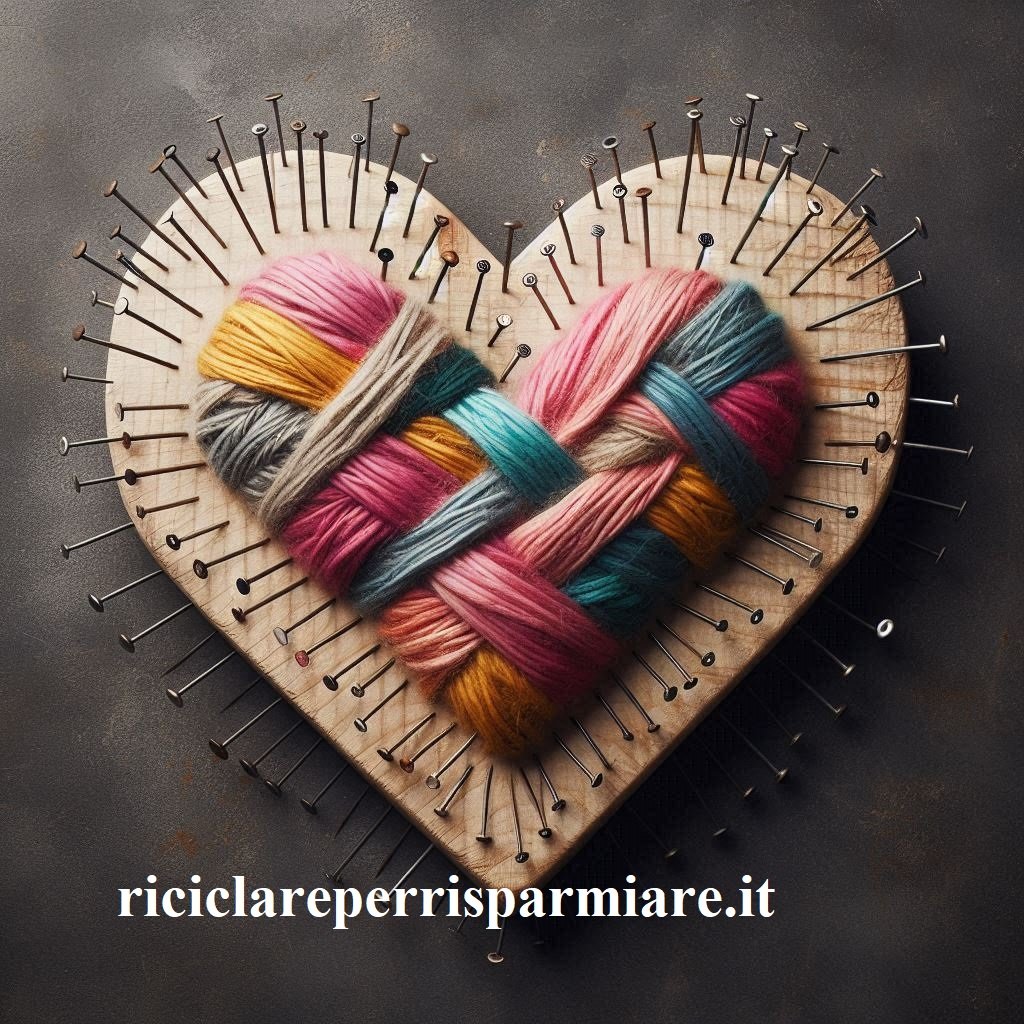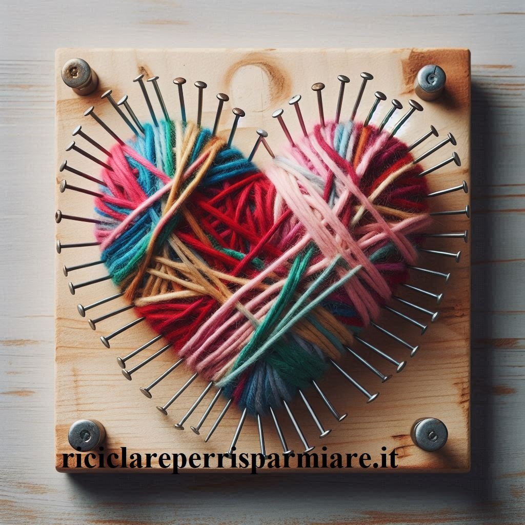 Come Creare un Cuore lana e chiodi e riciclare lana. Crea un cuore con Chiodi e Fili di Lana