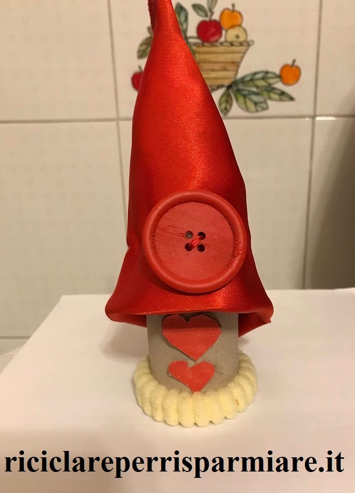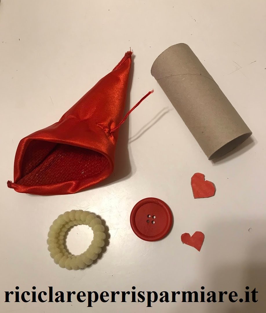 Come creare il folletto rosso e riciclare stoffa, un ritaglio di stoffa rossa che la mamma di Ida non utilizzava.