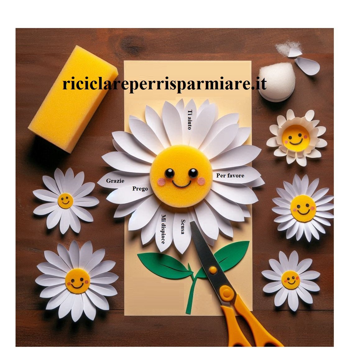 Realizzare margherite con faccine sorridenti di spugna, utilizzando i ritagli di carta, è un’attività divertente e educativa per i bambini. Questa guida ti mostrerà come creare queste meravigliose margherite passo dopo passo. Le margherite non solo abbelliranno la tua casa, ma insegneranno ai bambini l’importanza delle parole gentili come “grazie”, “per favore”, “prego”, “scusa” e “mi dispiace”.