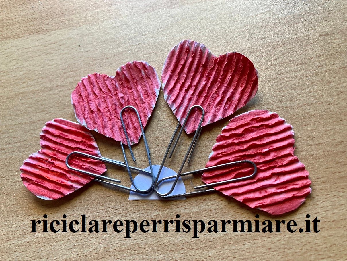 Per creare il mio ventaglio, avrai bisogno di quattro attash e quattro cuoricini rossi di cartoncino ondulato. Gli attash possono essere facilmente reperiti in casa o in ufficio ed è un modo eccellente per dare nuova vita a oggetti che altrimenti verrebbero gettati via. I cuoricini, invece, possono essere realizzati ritagliando il cartoncino ondulato con la forma a cuore.
