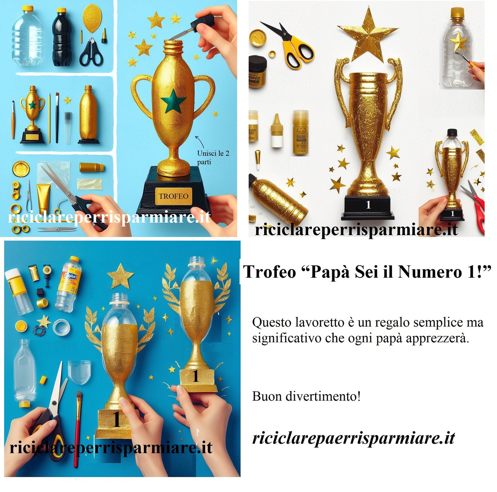 Trofeo numero 1 è un lavoretto semplice e creativo che i bambini possono realizzare per la festa del papà, utilizzando bottiglie di plastica. Questo progetto è divertente e permette ai piccoli artisti di esprimere la loro creatività.
