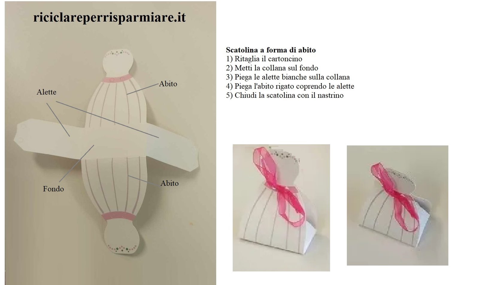 - Scatoline a forma di abito: Per confezionare le collane, i bambini hanno assemblato delle scatoline a forma di abito. Questo dettaglio rende il regalo ancora più carino e originale.