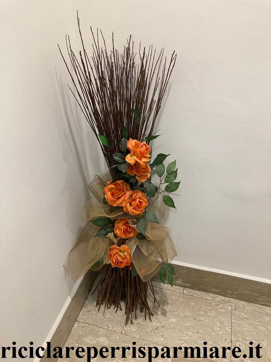 Come creare una composizione di rami e fiori per riciclare rami secchi accumulati dopo la potatura degli alberi.
