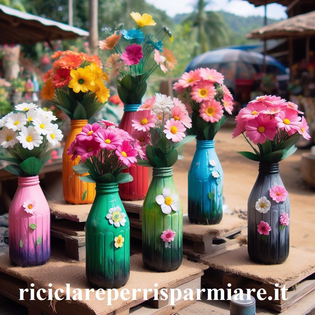 Ecco fatto! Hai creato bellissimi portafiori colorati utilizzando bottiglie di plastica riciclate. Ogni volta che guarderai questi portafiori, ricorderai l’importanza del riciclo e dell’arte nella tua vita quotidiana.