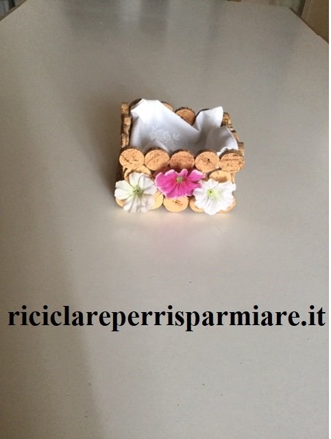 Come creare un mini box da cucina e riciclare tessuto; crea un cubo a una base, metti al suo interno un fazzoletto di tessuto e poi usalo come contenitore. La mamma della piccola Alice l’ha utilizzato in cucina come contenitore per l’aglio, la mamma di Giulia invece ne ha fatto un recipiente per i pot-pourri e quella di Ida invece per i laccetti metallici.