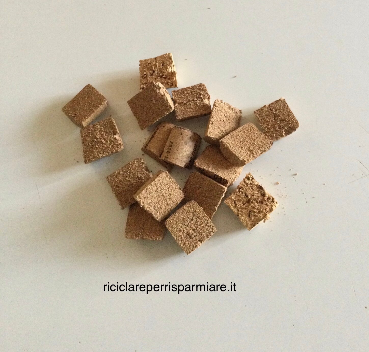 Una volta raccolti i tappi di sughero, è il momento di mettersi all’opera. Prendete ogni tappo e tagliatelo a metà nel senso della lunghezza, oppure divideteli in quattro parti. Questo vi darà più opzioni su come posizionarli all’interno del frigorifero.
